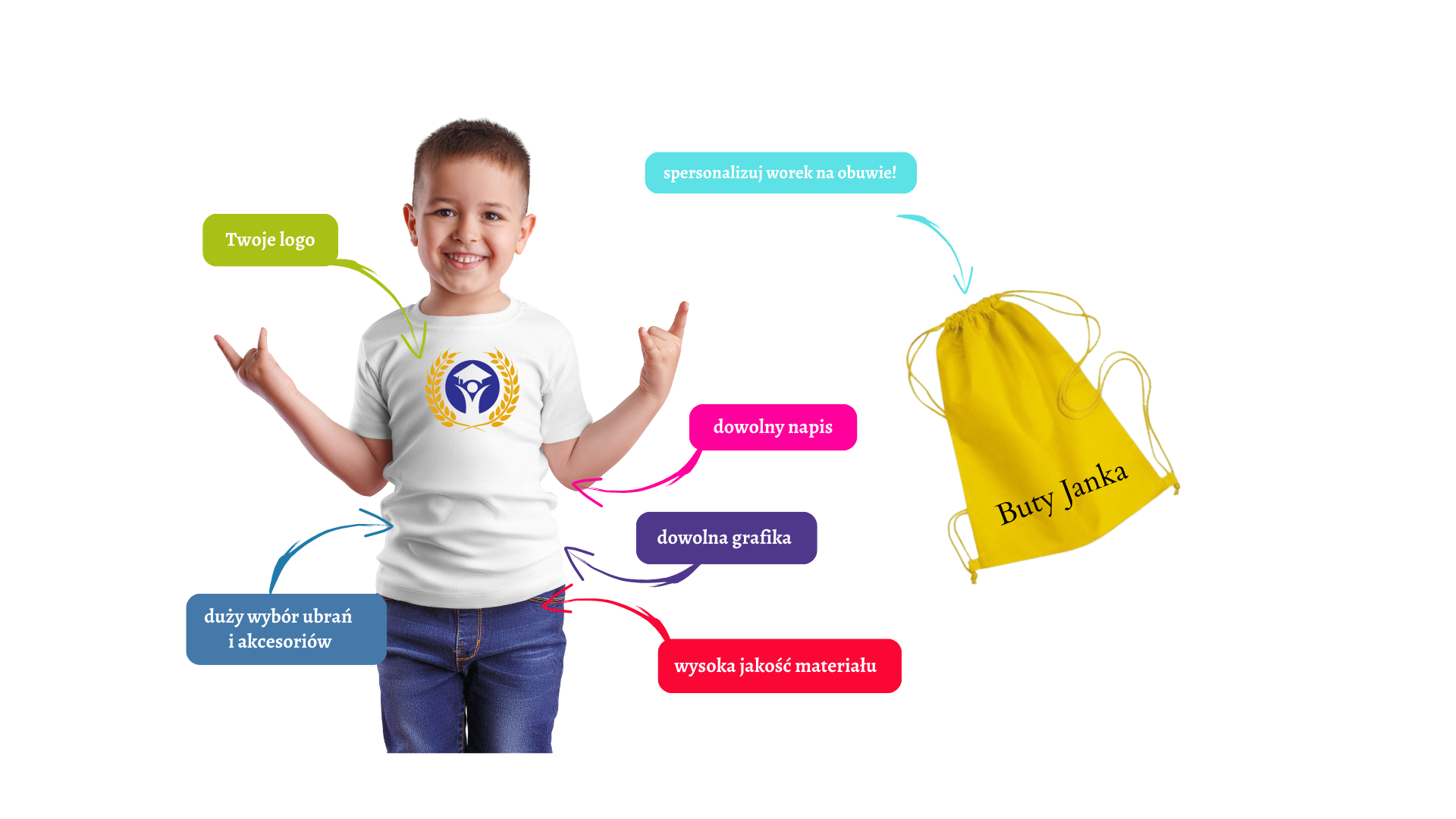Teraz możesz w pełni wyrazić ich zainteresowania i charakter dzięki naszym fantastycznym personalizowanym koszulkom i workom z nadrukiem!