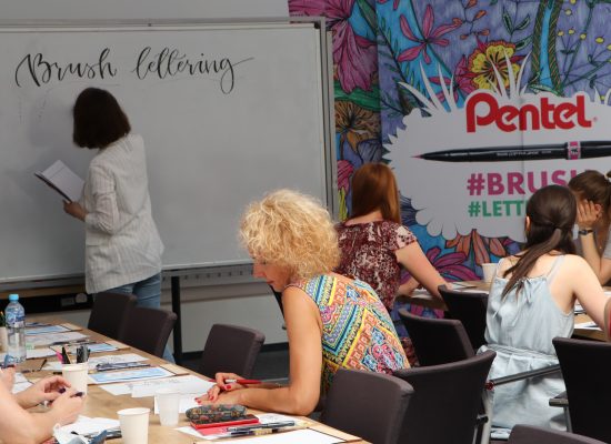 We wtorek, 29 czerwca, w licznym gronie, spotkaliśmy się na warsztatach kaligrafii organizowanych przez naszą Galerię Biurową we współpracy z marką Pentel. Na spotkaniu podejmowaliśmy temat sztuki pięknego pisania i kreślenia liter. Brush lettering okazał się strzałem w dziesiątkę!