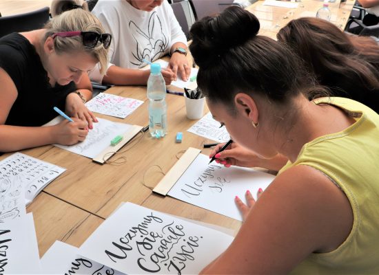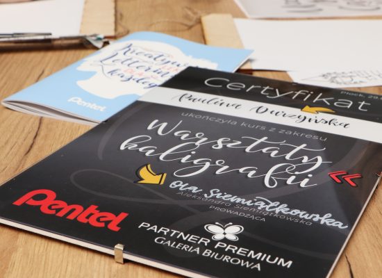 Wszystkim serdecznie dziękujemy za obecność, współpraca z Wami była czystą przyjemnością! Każdy z uczestników został nagrodzony certyfikatem ukończenia kursu z zakresu warsztatów kaligrafii, a my w nagrodę otrzymaliśmy mnóstwo Waszych uśmiechów i podziękowań za fantastycznie spędzony czas. Oby więcej takich spotkań.